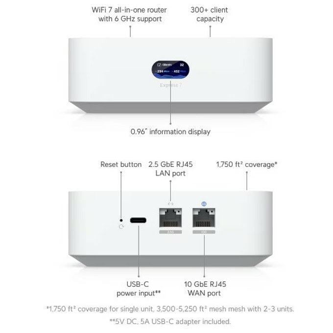 Optionally adopted as wired or meshed Layer 2 UniFi AP to extend coverage
